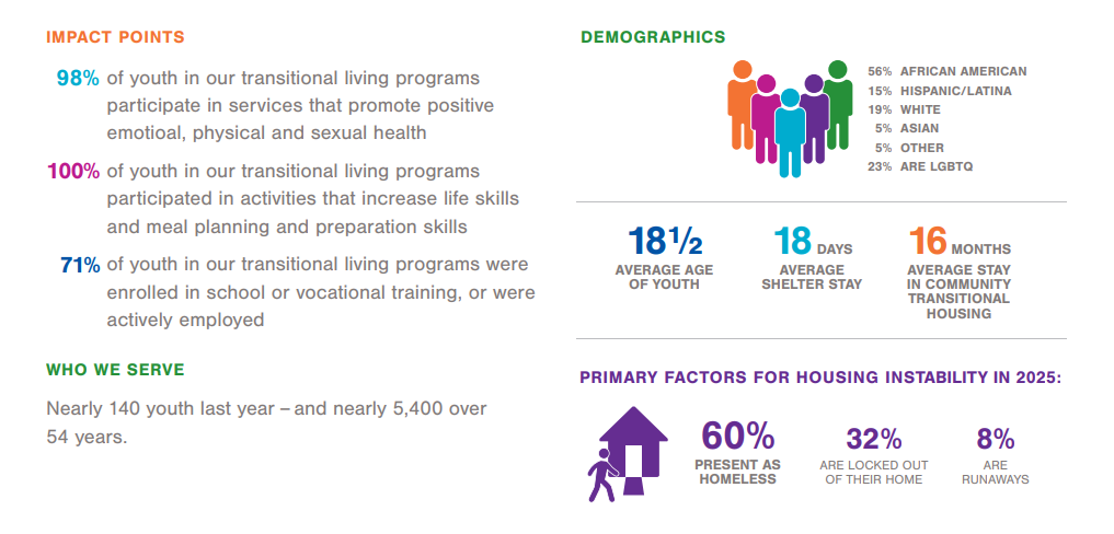 Every investment in The Harbour is an investment in the young people who come through our doors. We see their successes every day – they complete high school, maintain employment and rebuild or create new relationship. Some go on to college, receiving scholarships or paid internships. Each individual explores and discovers their own potential through the programs and services in partner with our compassionate and skilled staff.